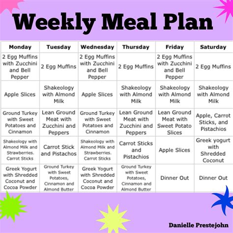 Weekly Meal Plan Danielle Prestejohn